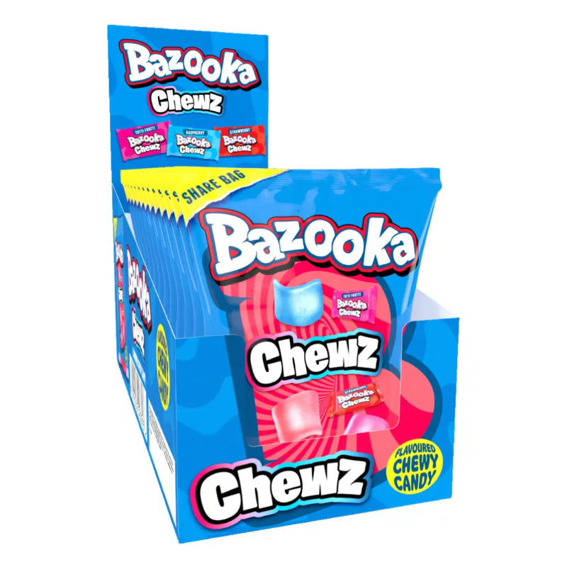 De klassieke kauwsnack is terug! Bazooka Chews combineren fruitige smaken met een zachte, chewy textuur – perfect voor iedereen die van de kenmerkende Bazooka-smaak houdt. Gemengd met verschillende fruitsmaken, biedt elk zakje langdurig kauwplezier voor jong en oud.