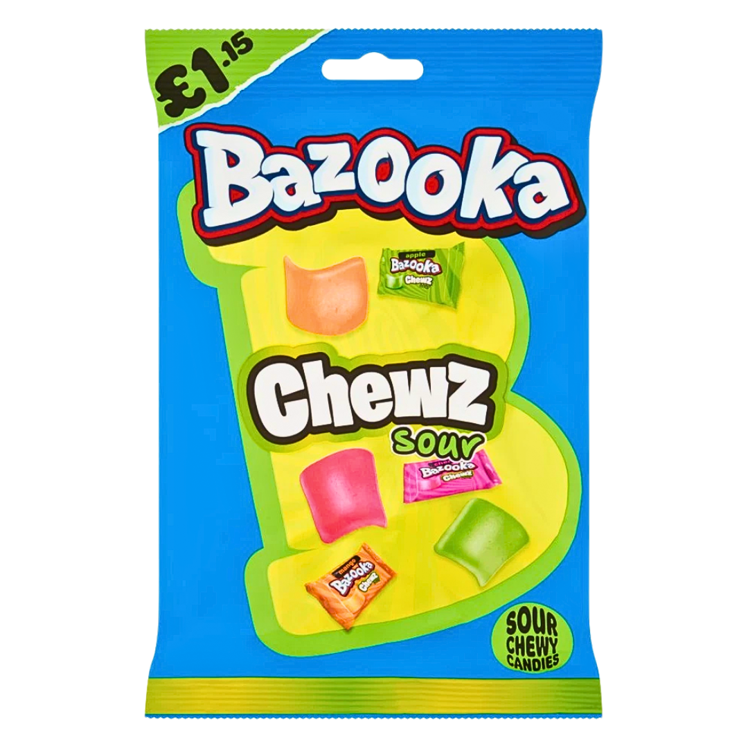 Extreem kauwplezier met een zure kick: Bazooka Chews Sour brengen een spannende smaak in je tas. Deze zachte kauwsnacks in verschillende fruitsmaken verrassen met een intense, zure noot – perfect voor wie van zoetzure lekkernijen houdt. Ideaal om te delen, als tussendoortje of voor onderweg.