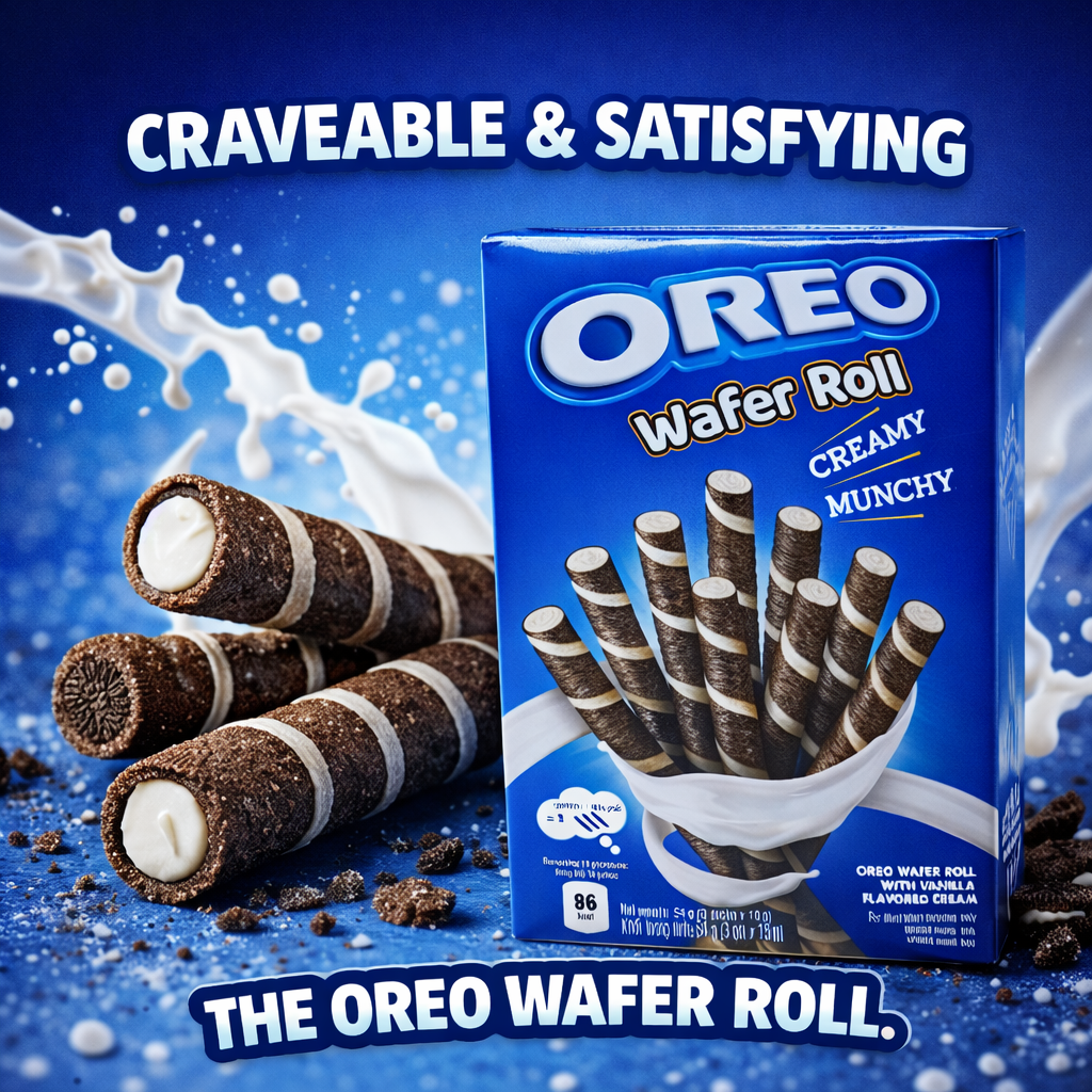 Die Oreo Wafer Roll Vanilla 54g sind knusprige Waffelröllchen mit einer cremigen Vanillefüllung im beliebten Oreo-Stil. Die feinen, gerollten Waffeln überzeugen durch ihre leichte, knusprige Textur und eine süße, aromatische Vanillecreme im Inneren. Ideal als Snack für zwischendurch, zum Kaffee oder als süße Ergänzung zu Desserts. Durch das praktische Format eignet sich die Packung perfekt zum Mitnehmen und Teilen.